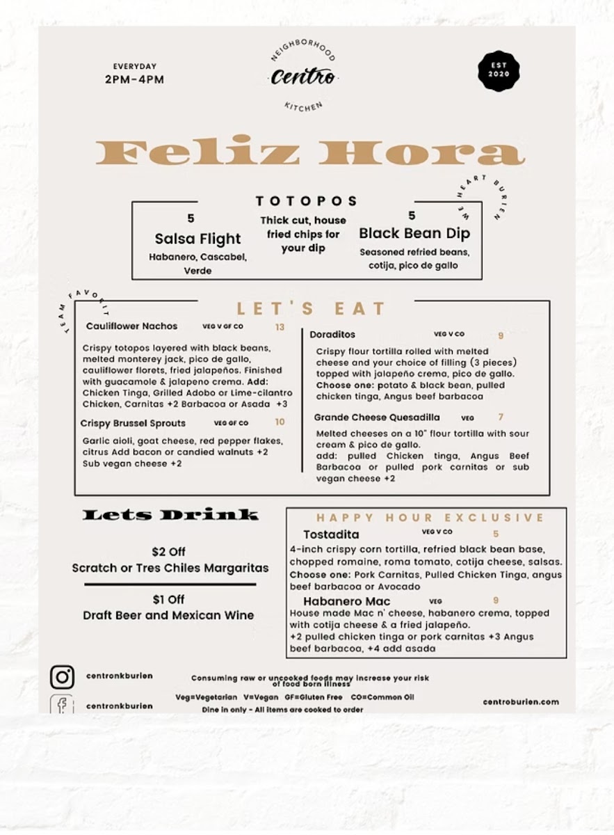 Welcome to Centro Neighborhood Kitchen, a vibrant gem nestled in the heart of Burien, Washington! This lively restaurant serves up a delightful fusion of Tex-Mex flavors with a contemporary twist, ensuring that every meal is a feast for both the eyes and the palate.