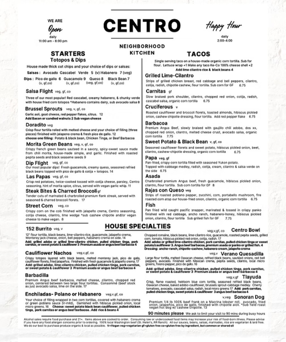 Join the throngs of satisfied customers who have left with smiles on their faces, excited to return many times again. Centro Neighborhood Kitchen awaits you!